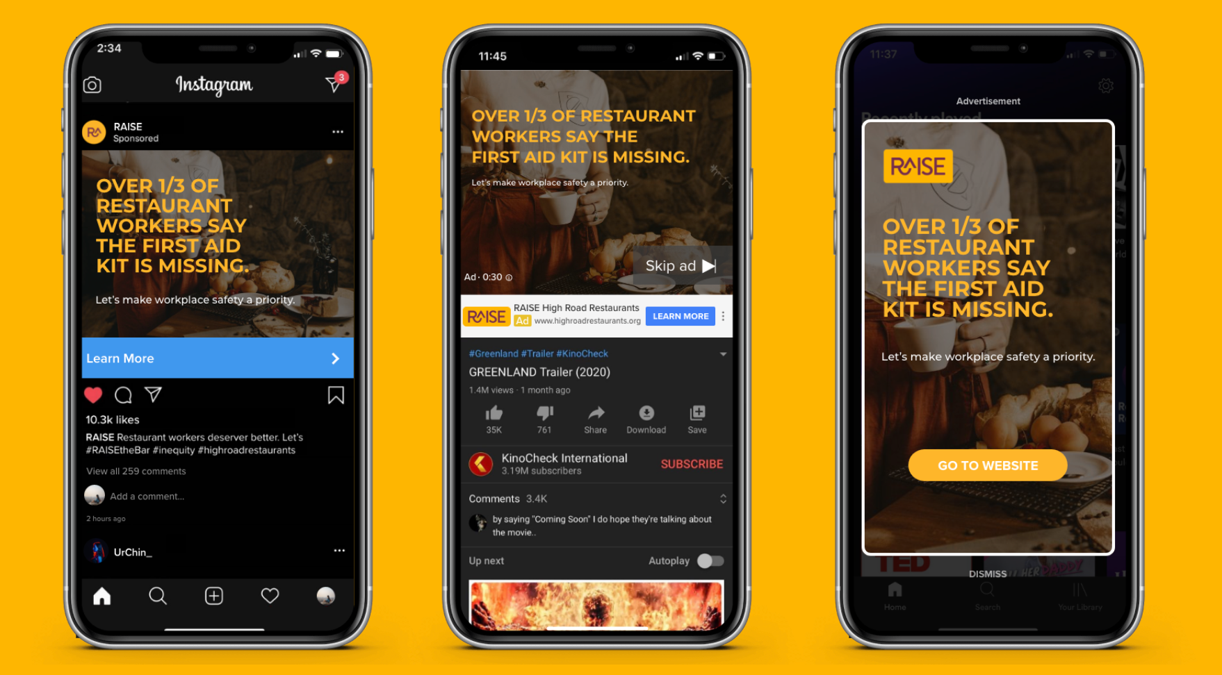 We created digital ads to spread awareness of RAISE Restaurants and help the cause by informing people of the disheartening conditions in the restaurant industry.